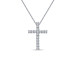 14K White Gold Diamond Cross Pendant Necklace Bezel Set (1/3 cttw.)14K White Gold Diamond Cross Pendant Necklace Bezel Set (1/3 cttw.)