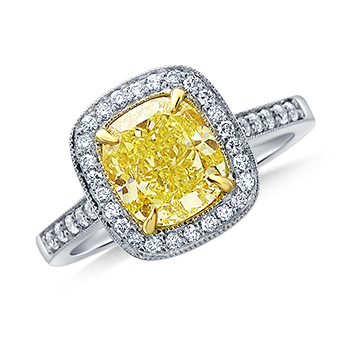 - Fast Online Shopping - Don't you love the convenience of compare, select and shop comfortably on your home PC? Shop cushion cut fancy intense yellow diamond halo ring in 18k two tone gold 1 58 cttw from a variety of different designs from different jewelers and merchants, all in one place! Discount shopping has never been this much easier.