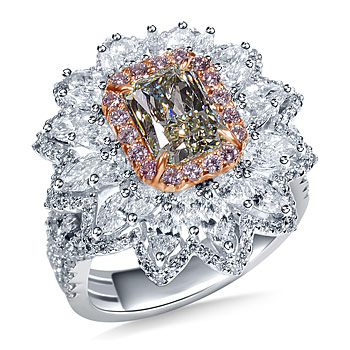 - Fast Online Shopping - Don't you love the convenience of compare, select and shop comfortably on your home PC? Shop fancy light bluish green radiant cut diamond floral ring in 18k rose gold 3 38 cttw from a variety of different designs from different jewelers and merchants, all in one place! Discount shopping has never been this much easier.