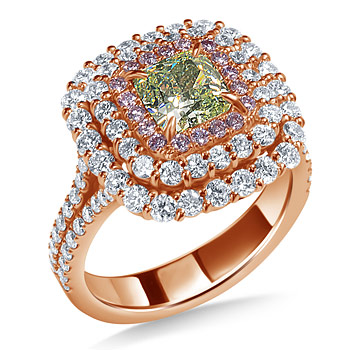 Fancy Light Bluish Green Radiant cut Diamond Floral Ring in 18K Rose Gold (3 3/8 cttw.)Stock #FRSE0578 Fancy Light Bluish Green Radiant cut Diamond Floral Ring in 18K Rose Gold (3 3/8 cttw.)