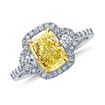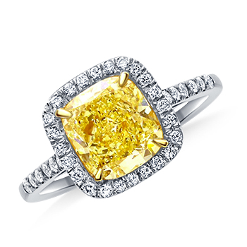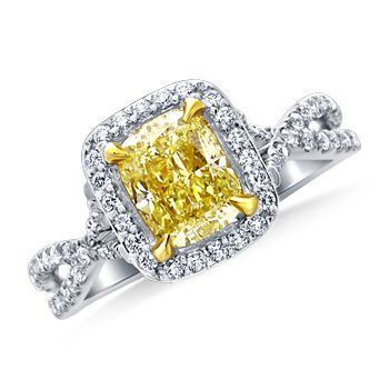 Fancy Light Yellow Canary Cushion Cut Diamond Halo Split Shank Ring in 18K White GoldStock #FRDW2005 Fancy Light Yellow Canary Cushion Cut Diamond Halo Split Shank Ring in 18K White Gold