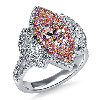 Light Pink Diamond with Square Halo Diamond Ring in 18K Two Tone Gold (3 5/8 cttw.)Stock #FRSE0729 Light Pink Diamond with Square Halo Diamond Ring in 18K Two Tone Gold (3 5/8 cttw.)