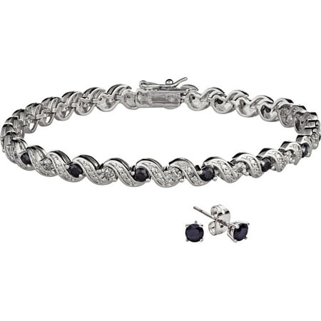 Rhodium Plated Diamond Accent & Sapphire Bracelet 7in with Earring: Rhodium platedGenuine sapphire and diamond accentBracelet measures 7"Every piece of Walmart jewelry passes rigorous...