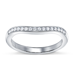 The graceful curve brings a lovely design element to this classic pave set diamond wedding band. The curved design allows the ring to nest against your engagement ring while the petite...