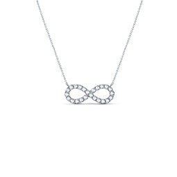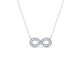 This infinity diamond pendant necklace makes an enduring symbol of love. Prong setting securely hold the brilliant cut diamonds while the stylish and sentimental figure eight design is gracefully susp...
