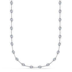 The cool gleam of 14K white gold is enlivened with stations of glittering diamonds. Evenly spaced bezel set diamonds give a fresh and modern look to this 16" princess length necklace. Expertly...