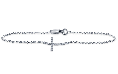 Sideways Diamond Curved Cross Bracelet in 14K White Gold (1/10 cttw.)