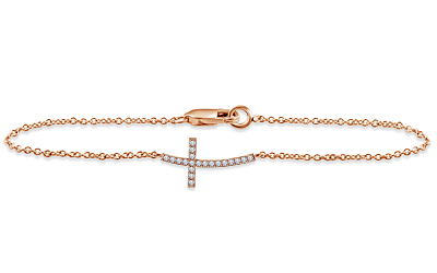 Sideways Diamond Curved Cross Bracelet in 14K Rose Gold (1/10 cttw.)