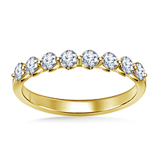 Diamonds appear to float in this elegantly designed and expertly crafted shared prong wedding band. Lovely as a matching band with enough sparkle to stand on its own, this...