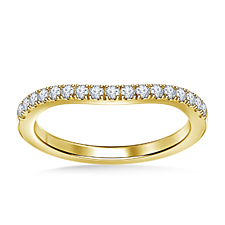 Elegant and delicate, this wedding ring in 14k yellow gold features prong-set round diamonds subtly curved to align and beautifully complement your engagement ring....
