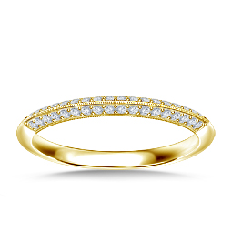 Diamond Pave Wedding Band with Two Rows of Diamonds Set Half Way in 18K Yellow Gold (1/4 cttw.)