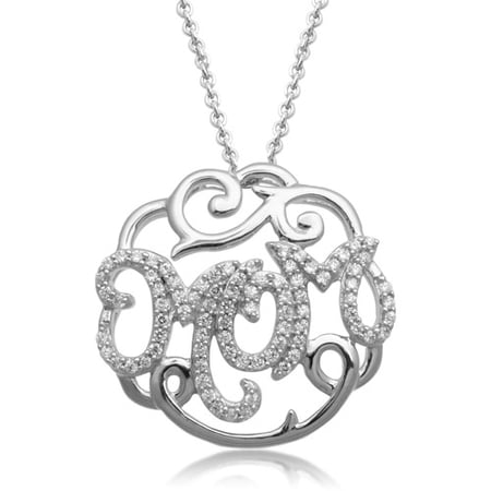 Honor mom with this meaningful CZ-accented heart pendant. Fashioned in sleek sterling silver, this round-shaped pendant is adorned with intricate scrollwork and scattered with shimmering CZ accents. The word "Mom" is centered for all to adore.