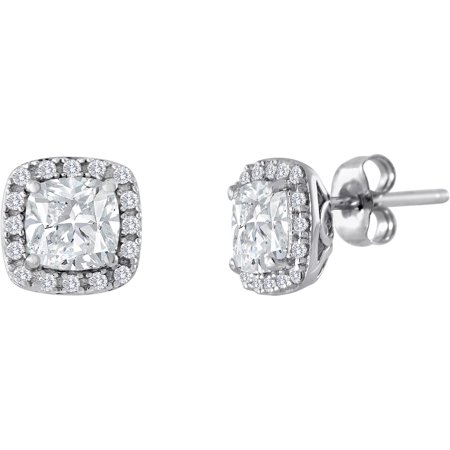 Sterling Silver CZ Cushion Halo Earrings: Sterling...
