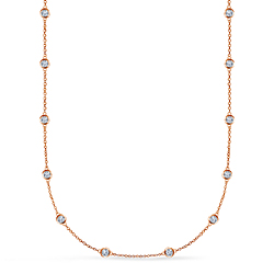 A dozen glittering diamonds delight the eye in this luxurious princess length 18K rose gold and diamond station necklace. Measuring 16" in length, the evenly spaced...