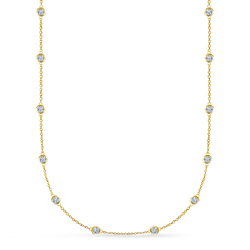 Bezel Set Diamond Station Princess Length Necklace in 18K Yellow Gold (1 1/5 cttw.)
