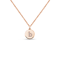 14K Rose Gold Diamond Initial 'B' Disc Pendant Necklace