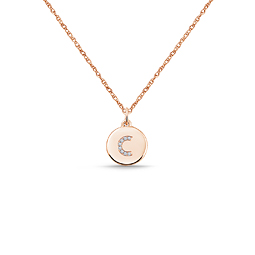 14K Rose Gold Diamond Initial 'C' Disc Pendant Necklace
