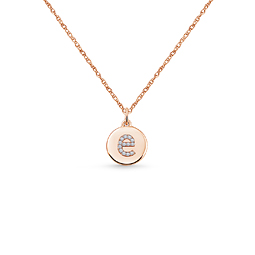 14K Rose Gold Diamond Initial 'E' Disc Pendant Necklace