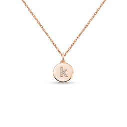 14K Rose Gold Diamond Initial 'K' Disc Pendant Necklace
