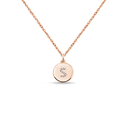 14K Rose Gold Diamond Initial 'S' Disc Pendant Necklace