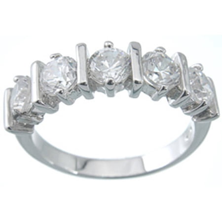 CZ Rhodium-Plated Sterling Silver Brilliant Band: Jewelry type: fashionJewelry setting: channelRing style: anniversary, bands, bridal sets, promise, 5-stone, fashionStone: CZMetal color: whiteMetal:...