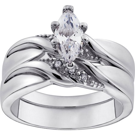 Sterling Silver 2-Pc. Marquise CZ & Diamond Accent Wedding Ring Set: Sterling silverFeatures genuine diamond accentsAvailable in sizes 5-10Every piece of Walmart jewelry passes rigorous...