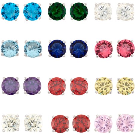 Simulated Gemstone and CZ Sterling Silver 5mm Round Earrings, 12 Pairs
