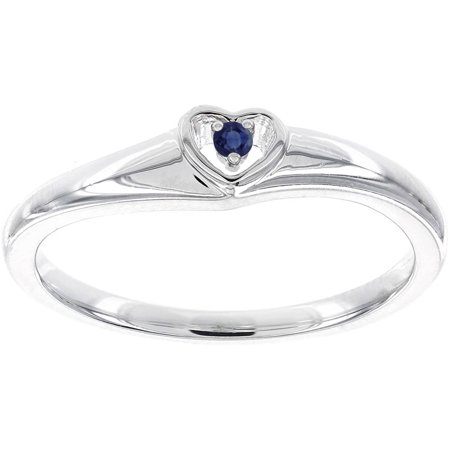 Round Sapphire Sterling Silver Heart-Shaped Ring: Ring style: promiseMetal: sterling silverMetal color: whiteStones: diamondsSide stone: diamondDiamond cut: roundClarity: I1-I2Diamond color: H-IJewelry...