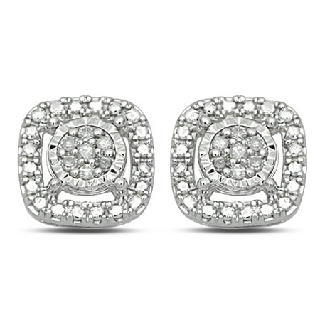 STERLING SILVER 1/10 CARAT DIAMOND CLUSTER CUSHION EARRING