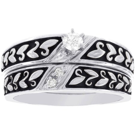 1/8 Carat T.W. Diamond Platina 4 Antique Wedding Set: Includes: bridal setMetal: Platina 4 (a combination of sterling silver, palladium, gold and platinum)Metal color: whiteStones: 1/8 ct. t.w....
