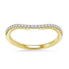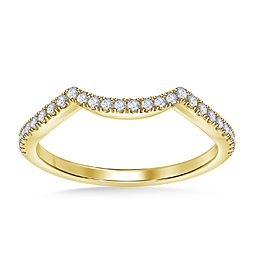 A graceful curved brings a lovely design element to this classic diamond wedding band. Expertly crafted in 14K yellow gold, the ring is set with glittering diamonds in secure prong...
