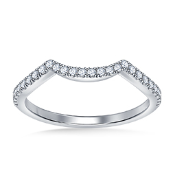 A graceful curved brings a lovely design element to this classic diamond wedding band. Expertly crafted in 14K white gold, the ring is set with glittering diamonds in secure prong settings...