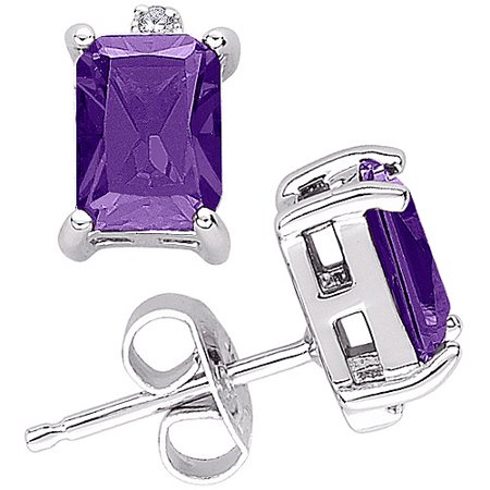 Emerald-Cut Amethyst and Diamond Accent Sterling Silver Earrings