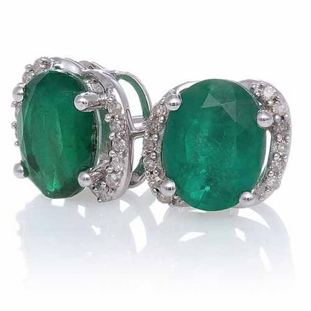 Add a little sparkle to your style with these Created Emerald Sterling Silver Oval Earrings. They feature brilliant 8mm x 6mm gems lined by shimmering diamond accents on the outer edges for a fashionable look that is timeless. These oval diamond earrings...