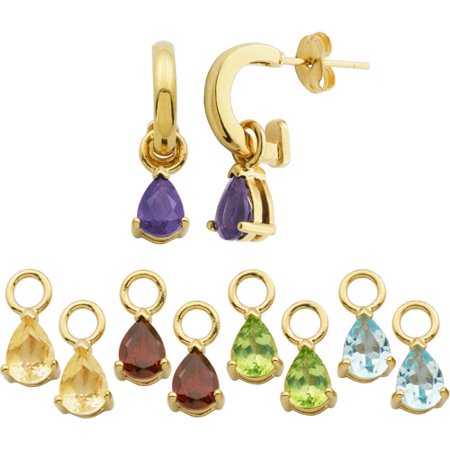Mix fun and glam with these interchangeable gemstone dangle earrings. Change your look by switching the gemstone out or wear the hoops solo for a no-stone, high-polish look. Perfect for enhancing your own look or as a gift for a fashionable loved one...