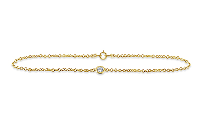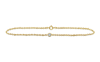 A singular fiery diamond provides sparkle and brilliance in this elegant and understated station bracelet. Expertly crafted in 14K yellow gold, the bezel set diamond adds a...