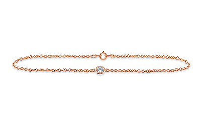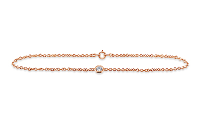A singular fiery diamond provides sparkle and brilliance in this elegant and understated station bracelet. Expertly crafted in 14K rose gold, the bezel set diamond adds a commanding...
