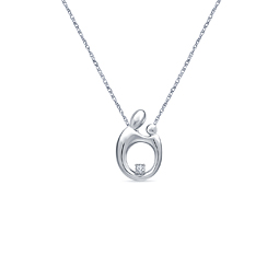 This pendant showcases a design of mother child relationship crafted in 14K white gold and highlighted with a diamond in the loop.