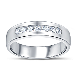 Show off with this enduring 14k white gold men's diamond ring featuring seven round diamonds in channel setting.