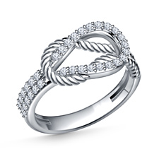This stylish love knot ring features a rope motif adorned with prong set diamonds. The warmth of 14K yellow gold is reflected in the beautifully crafted twisted rope detail. Intertwining knots evoke...