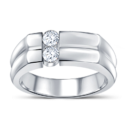 This stylish men's diamond ring features two channel set round diamonds for total weight of 1/2 carat.