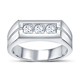 14K White Gold Men's Diamond Three Stone Ring (3/4 cttw.)