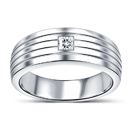 This 14K white gold men's diamond ring features one single round bezel set diamond.