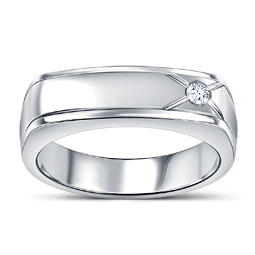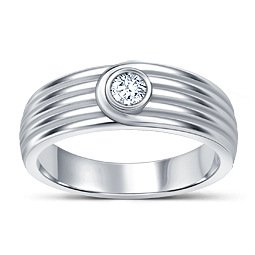 This dazzling men's diamond ring features one single bezel set diamond for total weight of 1/10 carat.