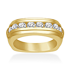 This 18K yellow gold men's diamond ring features 10 round channel set diamonds for total weight of 1 1/2 carat.