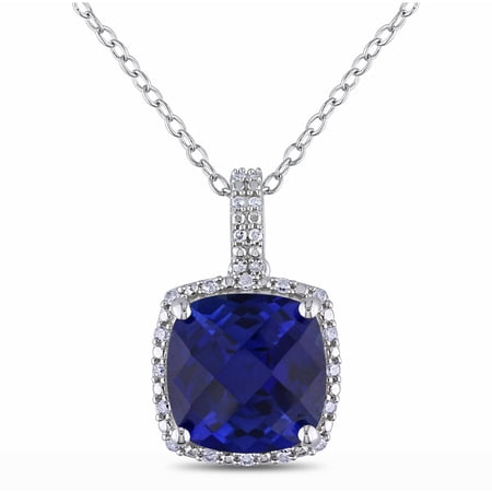 Add shimmer and chic to your overall ensemble with this 5-3/4 Carat T.G.W. Cushion-Cut Blue Sapphire And Diamond Pendant. This piece of jewelry can make an elegant accessory for a daytime affair or a glamorous night out. It can also be a gift to someone...