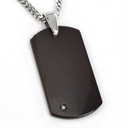 Step into the world of fashion with this Crucible Black-Plated Tungsten Carbide .0.01 Carat T.W. Diamond Dog Tag Pendant. Sleek and sophisticated, it will add flair to any outfit. It is crafted of quality metal, plated in black and finished with a brilliant...