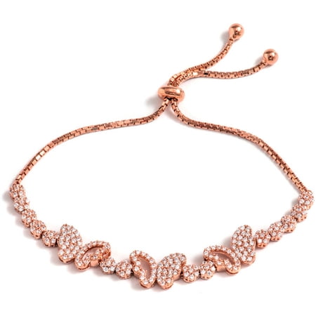 Pori Jewelers CZ 18kt Rose Gold-Plated Sterling Silver Multi-Butterfly Friendship Bolo Adjustable Bracelet: Crafted in solid sterling silverAdjustable...