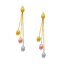 Pebbles Multi Drop Dangle Earrings in 14K Tri Color Gold