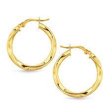 The hollow tube construction of these attractive hoop earrings creates a comfortable and lightweight feel and delivers a big gold look. The twist design provides a beautiful play of light as the highl...